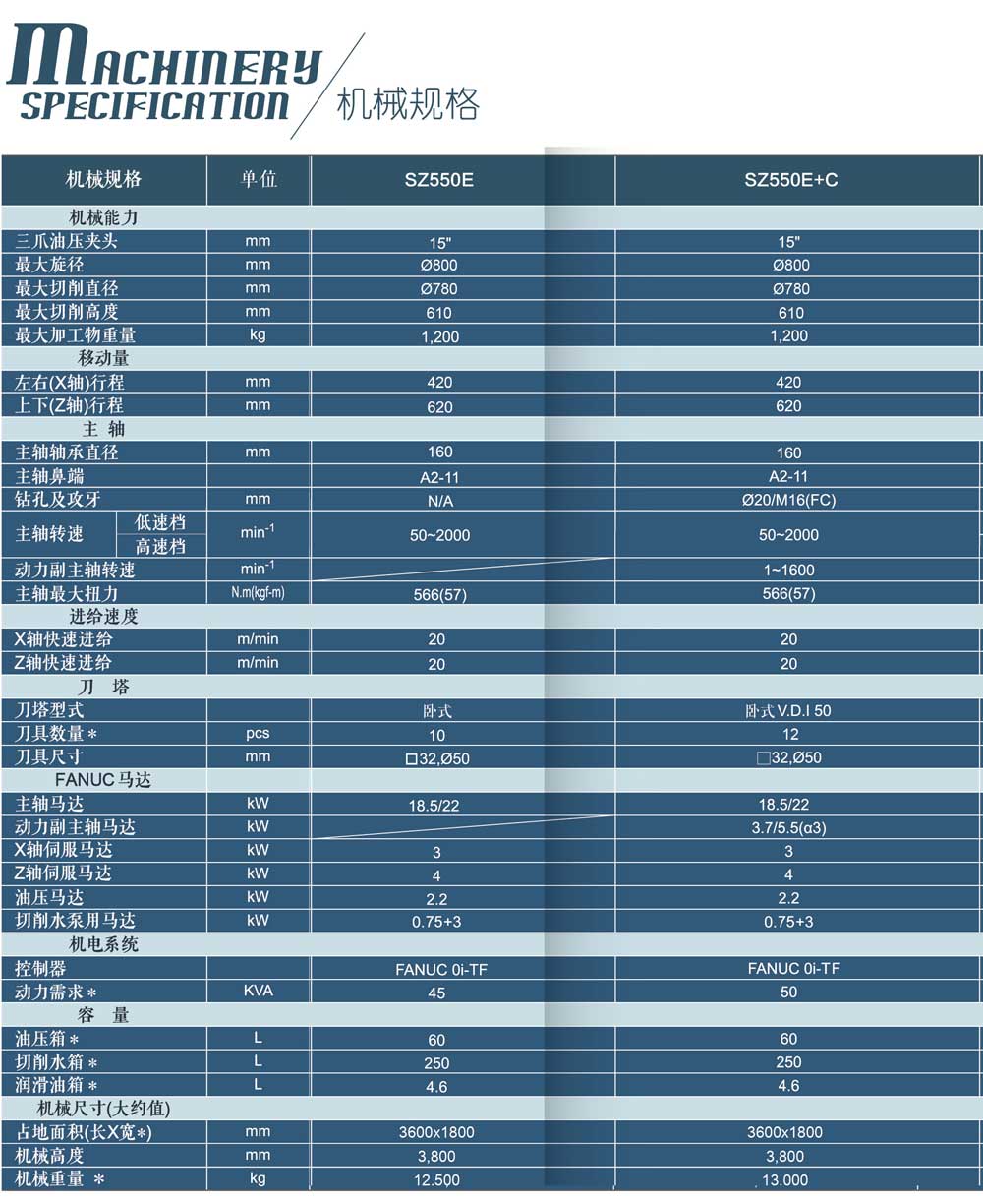 SZ550E數(shù)控立式車(chē)床技術參(cān)數: